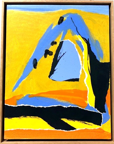 Acrylic, charcoal and glued papers on canvas board