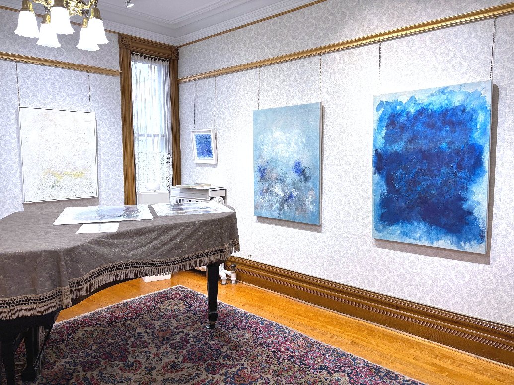 Créées dans son atelier bordant le lac de la Marche, en Vallée-de-la-Gatineau, ses œuvres naissent au contact de la nature environnante. L’eau du lac y est littéralement intégrée : elle dilue les pigments et terres colorantes venues d’Italie, de Turquie ou de France, donnant à la couleur une présence organique, vibrante. Les toiles, imbibées, deviennent des surfaces vivantes où la matière se répand, se superpose, se laisse guider par le geste.