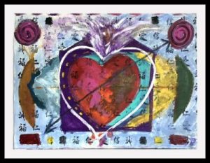 Accueil Bruneau, Kittie. Coeur encabané, 2006, techniques mixtes sur papier fait main, 53 x 72 cm (2)