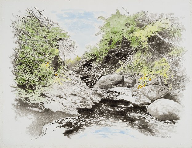 Le gouffre – The Chasm, 2016, acrylique sur papier Saint-Gilles, 47,5 x 62,5 cm 19 x 25 po. Photo Guy L’Heureux
