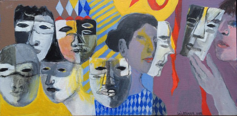 Des masques, 2000, acrylique sur toile, 30,5 x 61 cm
