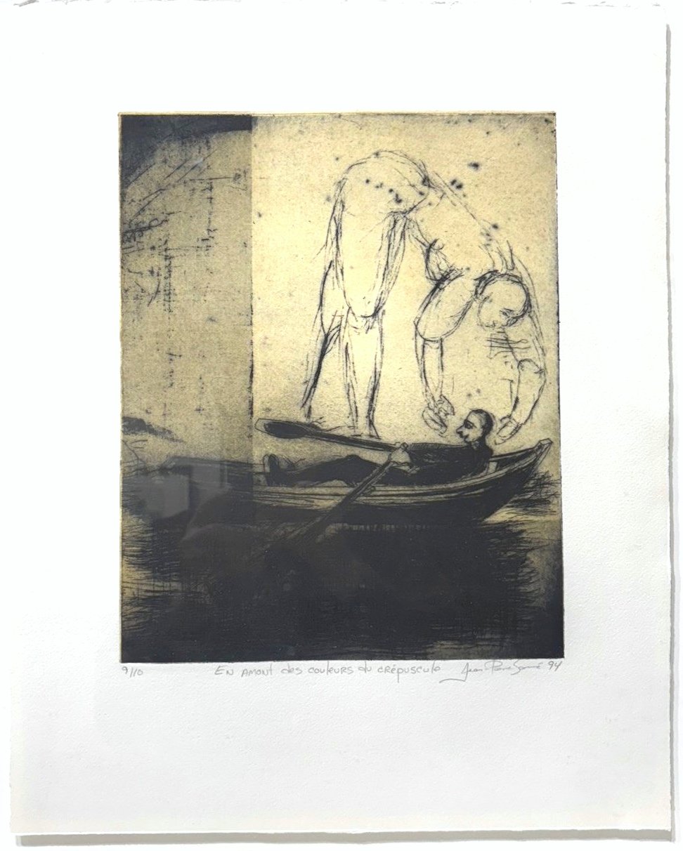 Eau-forte, pointe sèche avec chine collé