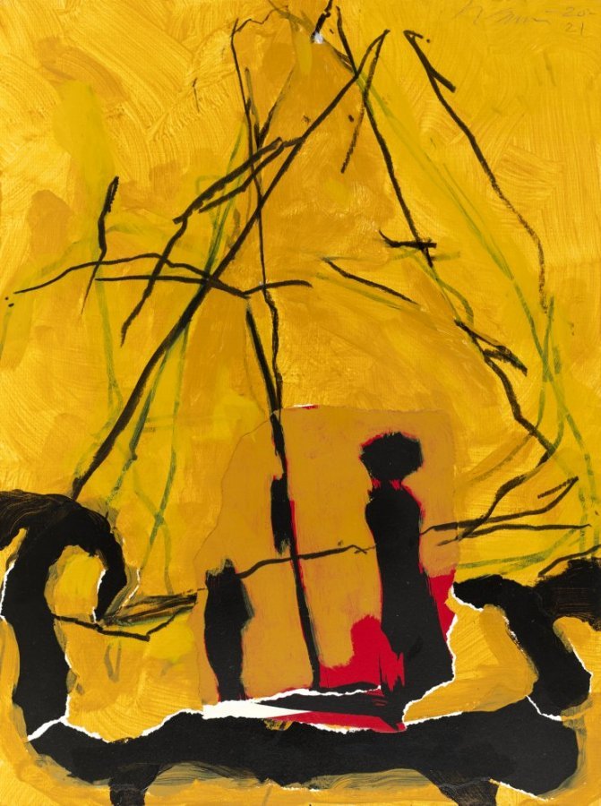 Médium : Acrylique, papier collé et fusain sur toile cartonnée