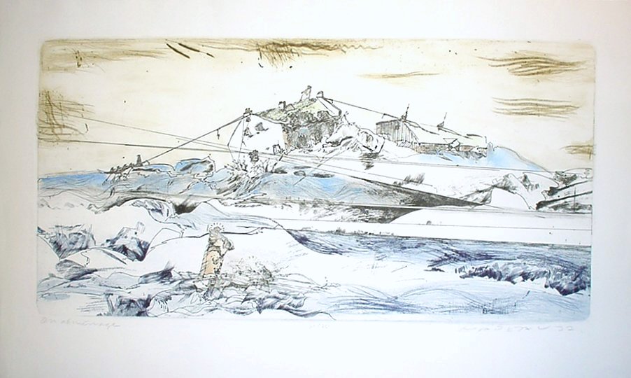 Nadeau, Marc-Antoine On déménage, 1977, Ed.75 Eau-forte et pointe sèche rehaussée à l’aquarelle, 64 x 104 cm
